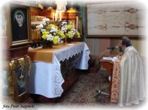 9:30 trumna zostanie przywieziona do sanktuarium.