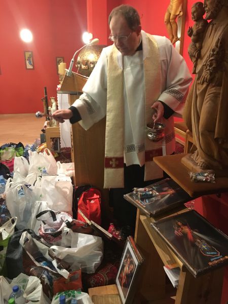 W niedzielę ks. Sebastian poświęcił wszelkie przedmioty kultu religijnego także egzorcyzmował olej, wodę, sól.