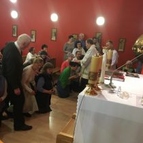 Pierwszego dnia, w piątek w godzinie Miłosierdzia przed Najświętszym Sakramentem zawierzyliśmy dany nam czas rekolekcyjny, wraz z wszelkimi intencjami przyniesionymi w sercu, Panu Jezusowi Królowi Miłosierdzia, łącząc się na modlitwie Koronką do Bożego Miłosierdzia.