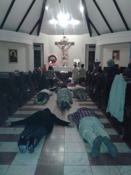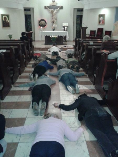 Czas duchowej uczty wypełniony był modlitwą i adoracją Najświętszego Sakramentu w dzień i w nocy. Szczególnie cenimy czas modlitwy z ks. Jackiem, który uczył nas modlitwy dziękczynienia i uwielbienia, także poprzez modlitwę uniżenia – leżeniem krzyżem. Przykład kapłana pomógł wielu uczestnikom w przełamaniu się i częstszego korzystania z tej postawy uniżenia i pokory.