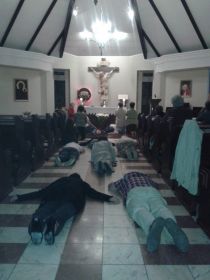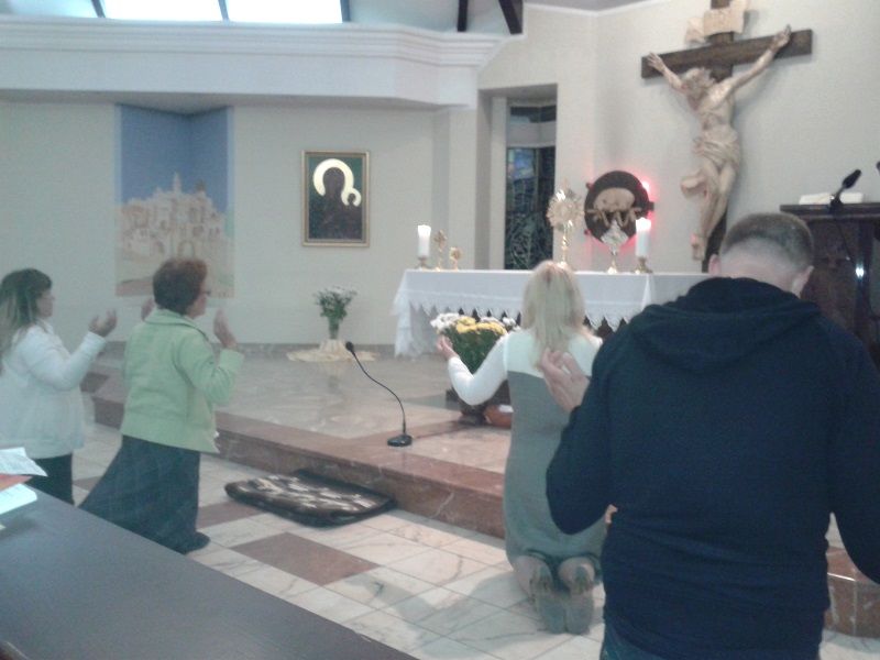 Pierwszy dzień zakończony modlitwami uwielbienia i wynagrodzenia przed Najświętszym Sakramentem.