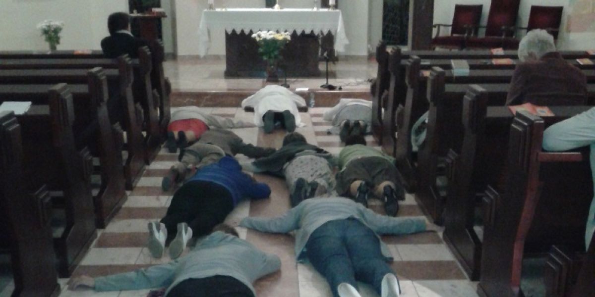 Akt skruchy, żalu, pokuty w uniżeniu ( leżenie krzyżem ).