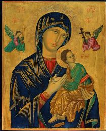 Tytuł Matki Bożej Nieustającej Pomocy jest na trwałe związany z dostojnym wizerunkiem Maryi, czczonym w Rzymie. Obraz namalowany na desce o wymiarach 54x41,5 cm, pochodzenia bizantyńskiego, przypomina niektóre stare ikony ruskie nazywane Strastnaja. Jego autorstwo jest przypisywane jednemu z najbardziej znanych malarzy prawosławnych wczesnego średniowiecza, mnichowi bazyliańskiemu - S. Lazzaro. Kiedy i w jakich okolicznościach obraz powstał, a potem dotarł do Rzymu - nie wiemy. Według niektórych źródeł został namalowany na Krecie w IX w.; inne dane mówią o wieku XII i pochodzeniu z Bizancjum lub z klasztoru na świętej Górze Athos. [...]