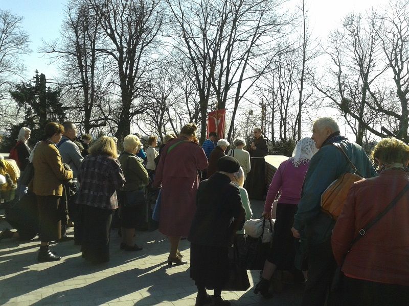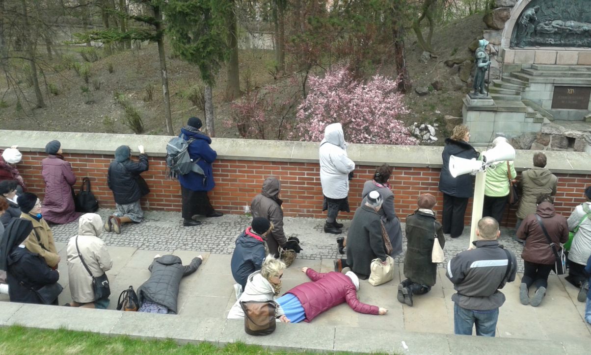 O 14:00 Spotkanie uczestników XIV Pielgrzymki Zawierzenia Legionu MRMSJ tradycyjnie przy pierwszej stacji Drogi Krzyżowej na Wałach Jasnogórskich. Niespodziewanie jeszcze przed rozpoczęciem rozważań Męki Pańskiej ks. Lesław Krzyżak, opiekun duchowy tej uczty duchowej i Wiesław Kaźmierczak prezes Zarządu Legionu MRMSJ udzielili wywiadu p. Mirosławie Szymusik z Radia Jasna Góra ( uzyskano pozwolenie na publikacje).