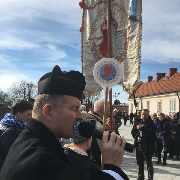 III ZAWIERZENIE DZIEŁ BOŻYCH MATCE KOŚCIOŁA I KRÓLOWEJ POLSKI „ABYŚMY BYLI JEDNO” z inicjatywy LEGIONU MAŁYCH RYCERZY MIŁOSIERNEGO SERCA JEZUSOWEGO rozpoczęło się zgodnie z programem o 15:00 KORONKĄ do Bożego Miłosierdzia poprowadzonej przez ks. Jacka Skowrońskiego na Wałach Jasnogórskich. Po niej udaliśmy się procesją zaproponowaną przez ks. Jacka do kaplicy Cudownego Obrazu na Mszę św. O 15:30 zawsze jest sprawowana Msza św. za Ojczyznę, dlatego ten punkt programu został zamieniony z Drogą Krzyżową, która odbyła się zaraz po Eucharystii. Ks. Jacek sprawował Msze św. w następującej int. „O światło Ducha [...]
