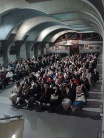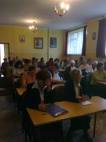 Kwadrans później zaproszeni goście z Warszawy - Anna i Zbigniew Kozikowscy z synem poprowadziła godzinną prezentację- świadectwo oddania się w niewolę miłości w tzw. akcie poświęcenia się Jezusowi przez Maryję. Stosowna relacja wystąpienia p. Ani Kozikowskiej -TUTAJ.