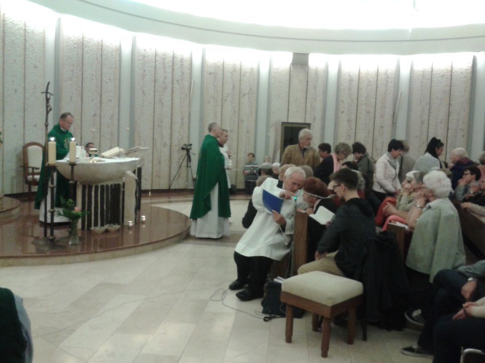 O godz. 18:00 była możliwość uczestniczenia we mszy św. dla pozostałych uczestników V P.M. Mszy św. przewodniczył i słowo wygłosił ks. Lesław, prezentując i przybliżając naszą wspólnotę wszystkim obecnym.